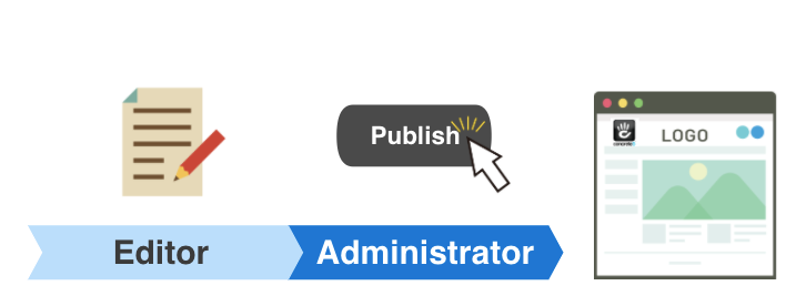担当者がそれぞれ更新したページを管理者に確認してもらい、公開するパターンです。