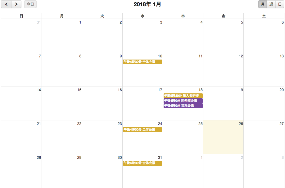 会議室予約やレッスンの空席状況などをカレンダー表示することができます。